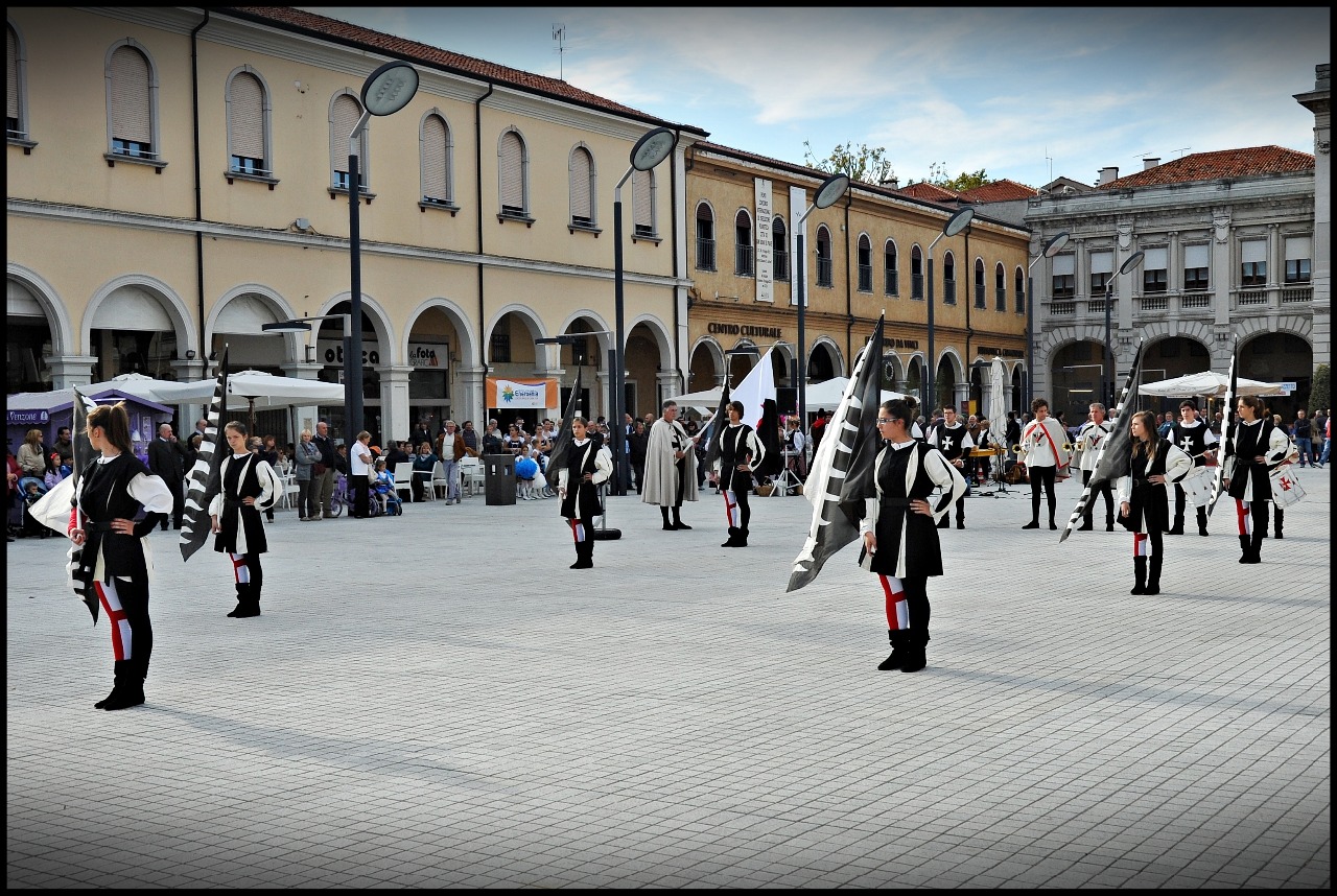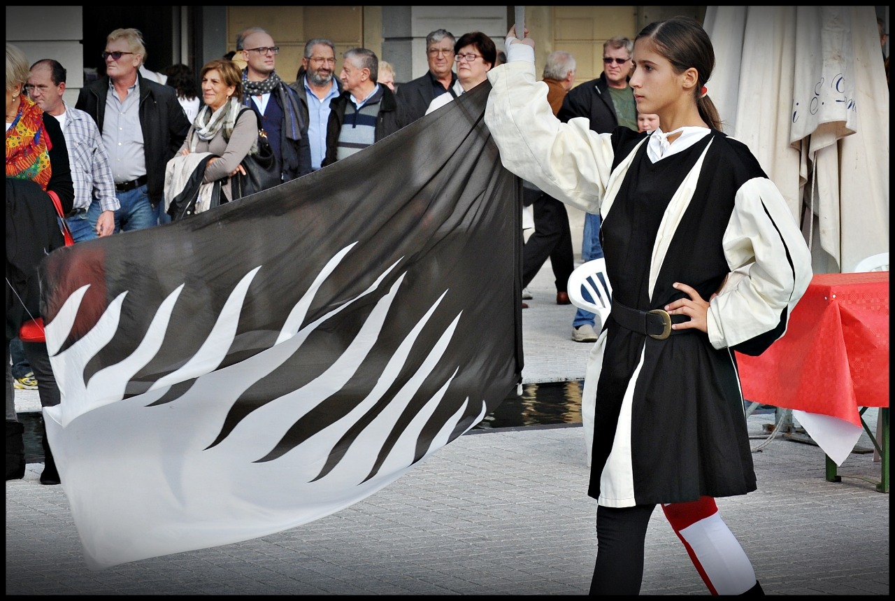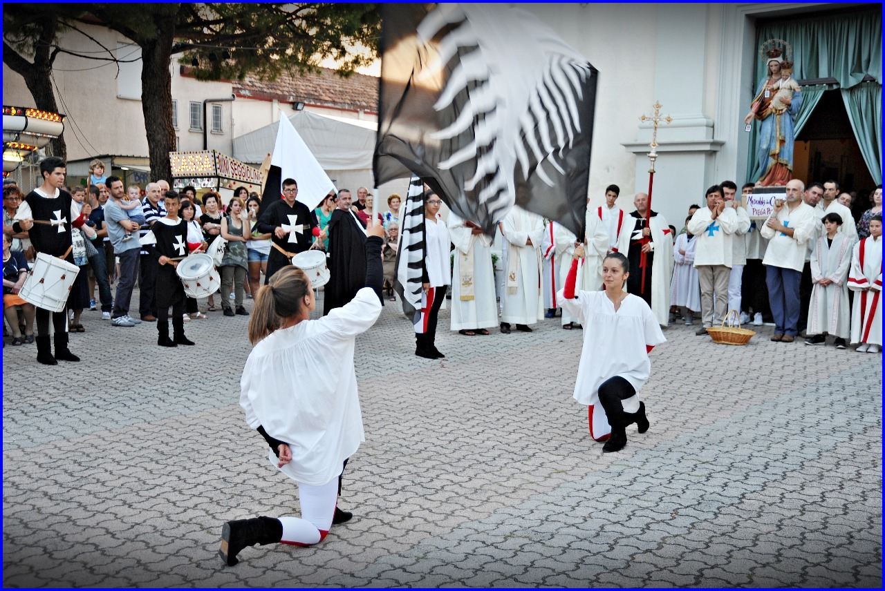Gli sbandieratori sono il fiore all' occhiello del nostro gruppo, l' anima di tutto, coloro che conquistano la piazza facendo volteggiare e volare le proprie bandiere come piume. Sostenuti dai ritmi piu coinvolgenti di tamburi e chiarine, abbagliano gli occhi della gente con i propri numeri, studiati nel minimo dettaglio, dalla postura al singolo lancio. La difficoltà dei loro essercizi si basa sul coordinamento di tutti i movimenti che devono essere svolti in modo sincrono e nella concezione degli spazi intorno a loro.